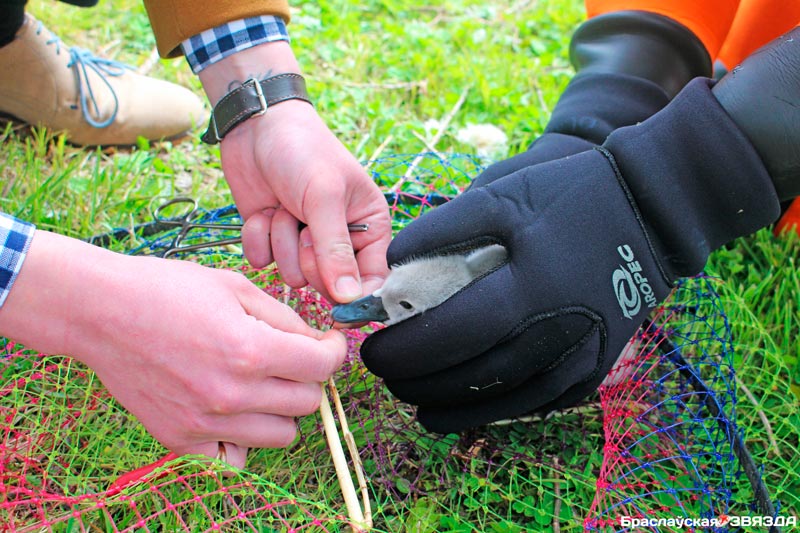 Оперативная группа в составе браславских спасателей, сотрудников районных инспекций природных ресурсов и охраны окружающей среды, ветеринарной станции выдвинулась на берег озера Новята. Действительно, неподалеку от берега в зарослях находилась семья лебедей с птенцами, у одного из которых в клюве торчал рыболовный крючок, а леска с него была обмотана вокруг стебля тростника. Вначале сотрудники РОЧС пытались достать птенца из воды, однако глава семейства не давал даже приблизиться к своему детенышу: грозно шипел и даже нападал. Раненый и напуганный лебеденок тем временем так сильно бился, что оторвался вместе с тростником, за который зацепилась леска. После этого птицы уплыли прочь…