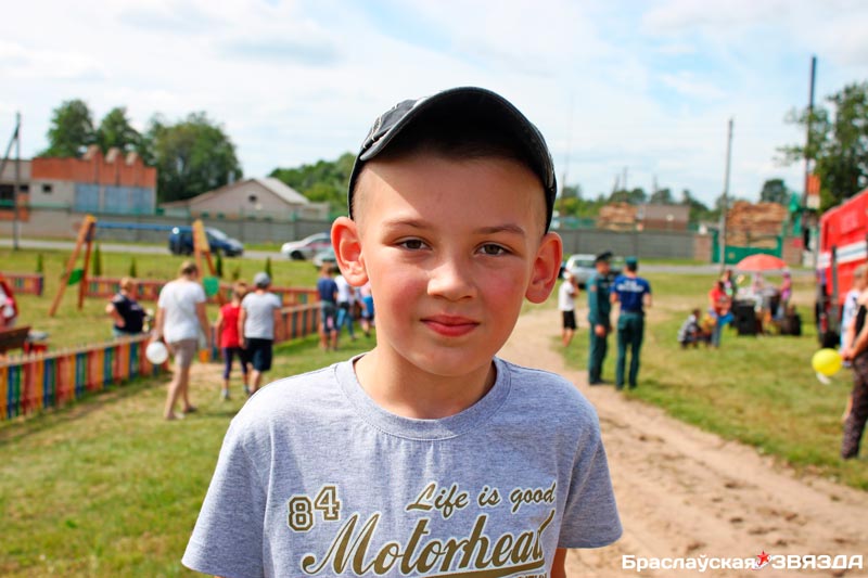 — на праздник я пришел с мамой, младшим братом Костиком и соседями. Мне все здесь очень нравится, особенно батуты. Сразу мы пошли туда, потом играли на площадке. Я посидел в пожарной машине, затем поливал водой из шланга, он тяжелый, но мне удалось его удержать. Было очень интересно.