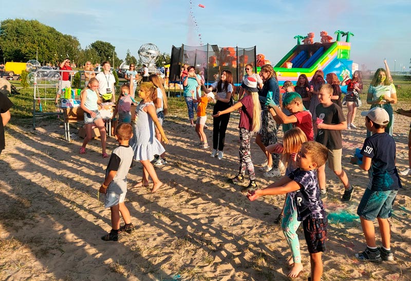 — Очень весело прошли фестивали красок холли, мыльных пузырей, воздушных шаров. Мы видим, что мероприятия такого формата востребованы как у браславчан, так и у гостей нашего города. Очень здорово и эмоционально прошло воскресенье, когда сотрудники Браславского РОЧС приехали на своем транспорте, проводили уроки безопасности. Дети с удовольствием играют и веселятся на наших праздниках, а родители нередко благодарят нас за такой досуг, — рассказывает заместитель директора РЦК Елена Зубко. — В связи с этим в ближайшее время в РЦК будет запущена дискотека для подростков, которым также нужно куда-то выплескивать свою энергию, общаться и веселиться. Еще одна детская площадка начала работу и на пляже оз. Бережье. В минувшие выходные там были батуты и надувные горки. Пока позволяет погода, мы будем радовать детей разнообразным досугом.