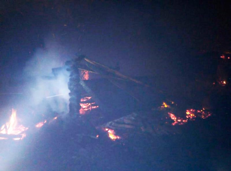 В результате пожара в доме уничтожены кровля, потолочное перекрытие, имущество, повреждены стены.