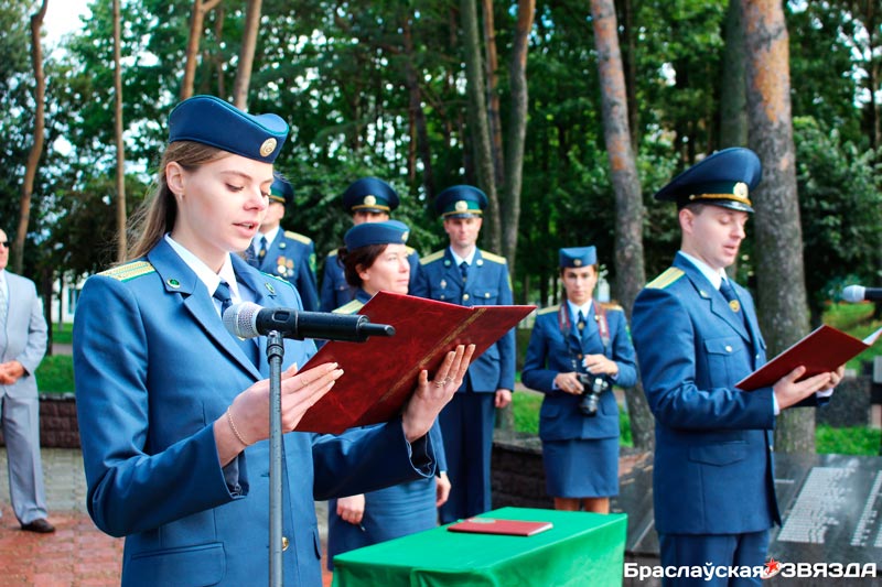 Отправной точкой в профессиональной жизни каждого должностного лица, осознанно принявшего решение связать свою жизнь с таможенной службой, является принесение присяги на верность Родине. Торжественное мероприятие по этому поводу недавно прошло в Браславе. Здесь новобранцы-таможенники, успешно прошедшие серьезный конкурсный отбор и уже выдержавшие испытание на профессиональную пригодность в пунктах пропуска «Урбаны» и «Бигосово», клялись верно служить Отечеству и его народу. После этого начальник Витебской таможни Павел Лобачев в своей поздравительной речи выразил уверенность, что каждый новоиспеченный инспектор будет с гордостью носить синюю форму и почетное звание таможенника.