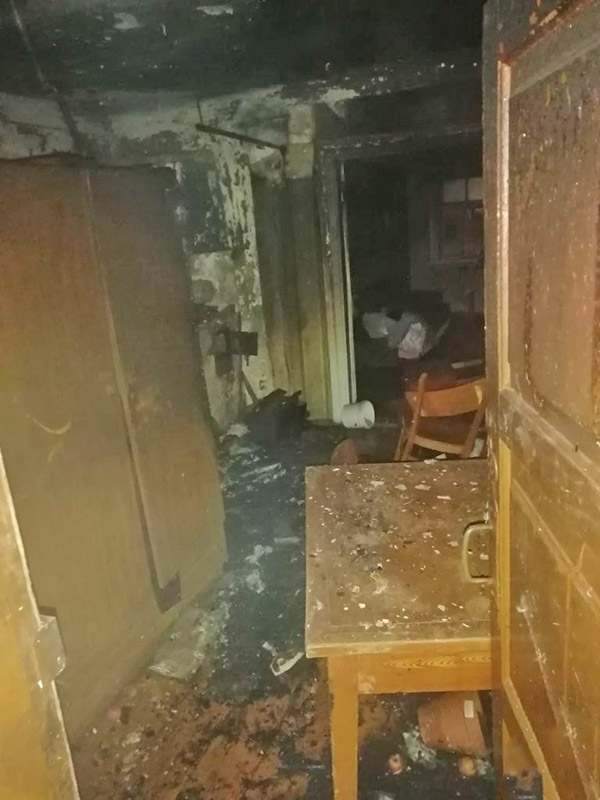 Огонь уничтожил имущество, повредил стены и потолок комнаты. К сожалению, спасатели на полу возле кровати обнаружили обгоревший труп женщины. Пожарный извещатель был в помещении был, он сработал, однако не оказал влияния на обнаружение пожара.