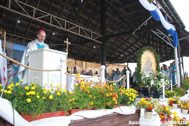 Біскуп Віцебскі Алег Буткевіч, дарэчы, ураджэнец Браслава, шчыра вітаў пілігрымаў, прысутных іерархаў, прадстаўнікоў мясцовай улады, вернікаў. У сваёй прамове ён заклікаў маліцца пра паратунак і літасць да сучаснага свету, Божую мудрасць для ўсіх, бо «мы і ёсць тая Божая ніва, якая павінна прыносіць багаты плён годнага хрысціянскага жыцця, трывалых сем’яў, адданага пастырскага служэння і адказнага служэння грамадству». ■