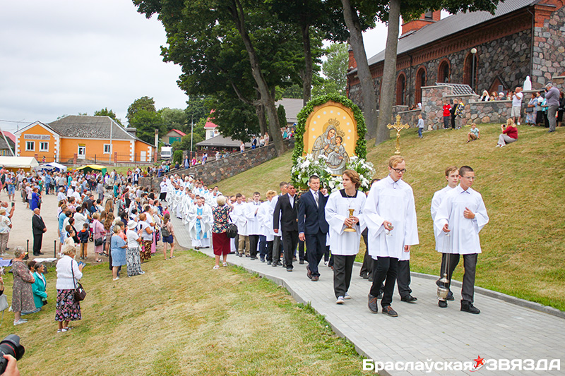 На працягу летніх месяцаў у санктуарыях каталіцкіх дыяцэзій праходзілі Марыйныя фэсты, шэраг якіх завяршыла адпустовая ўрачыстасць у Браславе. Сёлета яна адбылася 19 – 20 жніўня, і на два дні наш горад стаў месцам прыцягнення соцень мясцовых прыхаджан, пілігрымаў і вернікаў з розных куткоў краіны. Усе яны сабраліся, каб выказаць пашану да іконы Божай Маці Валадаркі азёр.