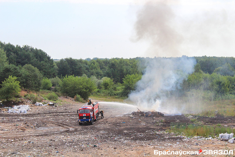 На городском полигоне для твердых бытовых отходов «Мелевцы» произошла отработка вводной «пожар», во время которой сотрудники РОЧС и КУП ЖКХ «Браслав- коммунальник» проявили слаженность действий для ликвидации возгорания и недопущения распространения огня.