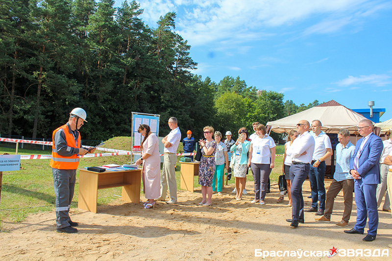 На станции обезжелезивания воды «Заборные гумны» работники филиала «Новополоцкводоканал» наглядно для всех участников семинара прошли все этапы соблюдения правил охраны труда при производстве работ по замене насоса на скважине, при обслуживании станции обезжелезивания, при подключении передвижного источника питания во время аварийного отключения электроэнергии, а также продемонстрировали свои навыки оказания первой помощи при наличии только универсальной аптечки.