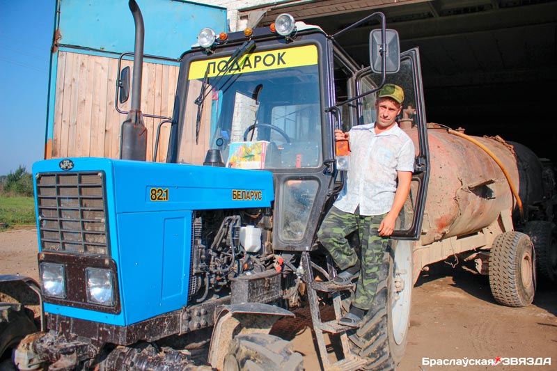 Яўген на трактары падвозіць ваду да гуртоў кароў на пашу, падкошвае траву, падкормлівае пасевы. Мужчына не цураецца ніякай справы. Калі трэба, падмяняе нават даярак: дае ім водпускі і дэманструе высокія надоі.