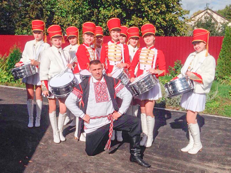 — Я считаю, что у девчонок шикарный потенциал. Они, конечно, молодцы, стараются, могут даже сами придумать комбинацию. Бывает, и немного ленятся, но всё равно очень ответственные, — говорит Е. Толстик. — Когда я начинал работать, то мне не очень нравилось, что они просто ходят строем и барабанят, поэтому мы стали вводить всякие хореографические элементы. Потом, когда попали на «Славянский базар», оказалось, что мы не одиноки в этом плане. Вообще фантазии нет предела, комбинаций разных много. Учим всё понемногу.