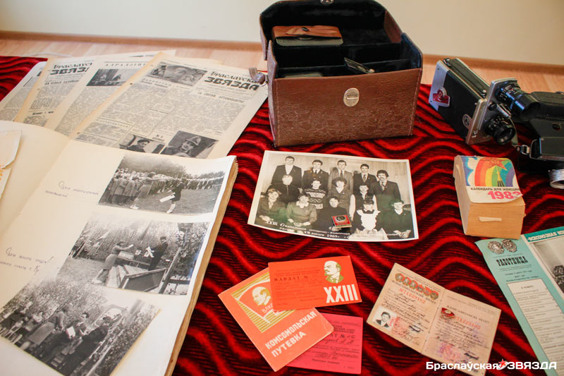 В просторном зале на втором этаже учреждения были организованы экспозиции, где выставлялись атрибуты комсомольского времени, а также информационные буклеты и стенгазеты от преемников — первичек БРСМ, которые достойно продолжают лучшие традиции, заложенные ВЛКСМ.