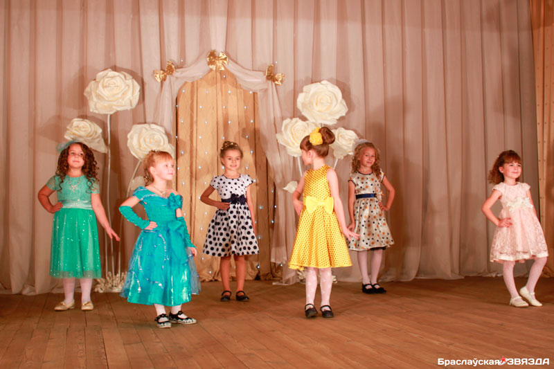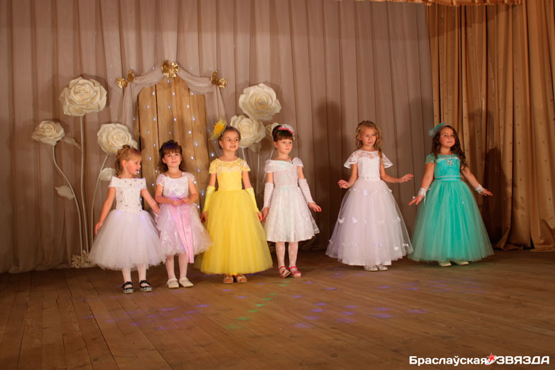 После маленькие модницы сново элегантно дефилировали по сцене, только уже в красивых бальных платьях. Благодарные же зрители не жалели своих ладоней и шквалом аплодисментов встречали каждый выход конкурсанток.