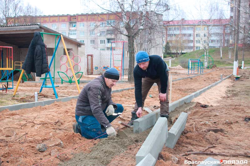 Развернулись ремонтные работы и на территории яслей-сада № 3, которые также выполняют сотрудники полоцкой строительной организации.
