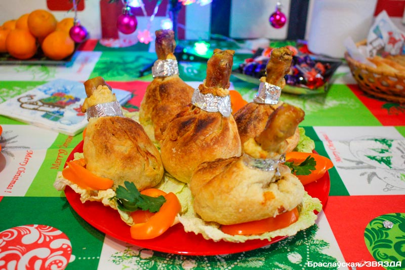 Сегодня же хозяйка раскрыла секрет своего коронного блюда — «Фаршированные шампиньоны» и недавно опробованного — «Куриные ножки в мешочке», которые отлично подойдут к новогоднему столу и понравятся не только гостям, но и символу наступающего года. Это довольно бюджетные рецепты, но блюда и получаются аппетитными, и выглядят привлекательно и нестандартно. Попросту говоря, украсят любой праздничный стол.