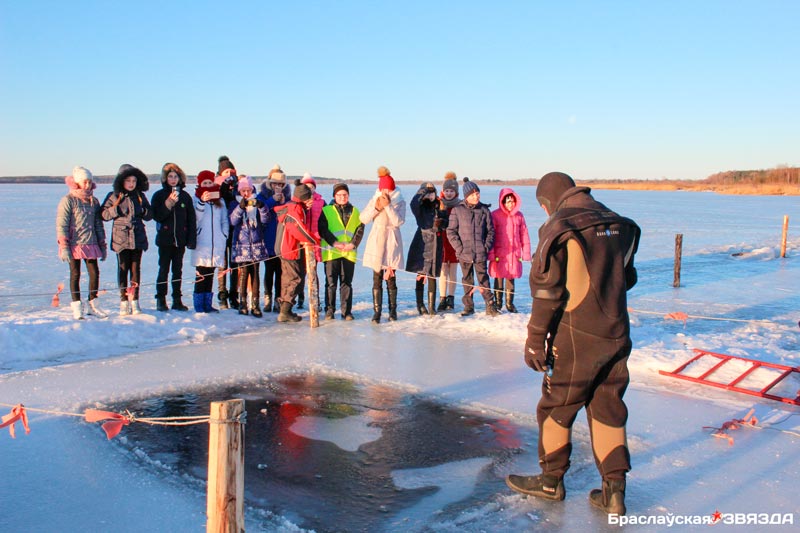 И не только на словах учащиеся получили ответы. Практический пример всегда оказывается куда полезнее и лучше запоминается. На глазах ребят водолаз-спасатель якобы стал потерпевшим и реально провалился под лед, после чего показал, как правильно себя спасать: выползать из ледяной воды, двигаться, оказавшись уже на поверхности. Также школьники смогли посмотреть и примерить водолазное снаряжение, понаблюдать за оперативной ситуацией на оз. Дривяты. ■