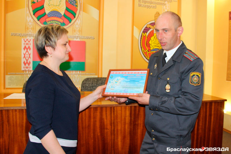 Не менш прыемных слоў асабістаму саставу выказала намеснік старшыні райвыканкама Вольга Вялічка. Ганаровыя граматы райвыканкама і райсавета яна ўручыла старшаму дзяржаўтаінспектару АДАІ Анатолю Баравіку і намесніку начальніка РАУС Сцяпану Шакелю адпаведна, Падзяку старшыні райвыканкама — памочніку дзяжурнага АДС Аляксандру Акулічу.
