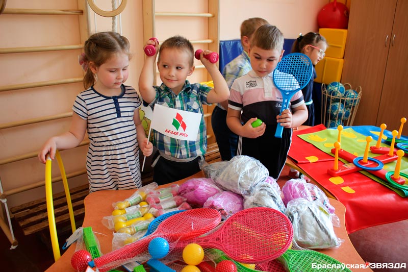 — От районной организации «Белая Русь», — говорит заведующая детским садом № 1 Ольга Шимукович, — наше учреждение получило спонсорскую помощь в размере 3 тысяч белорусских рублей. На эти деньги решили обновить спортивно-игровой инвентарь, который не менялся долгие годы. Выбирая элементы для уличных площадок, ориентировались на простоту, удобство и безопасность. Спортинвентарь, а это развивающие коврики, кольца, обручи, фитболы, теннисные ракетки, гантели, будут отличным подспорьем в физическом развитии наших деток. К тому же нам удалось установить еще и шведскую стенку. От лица всего коллектива, родителей и детей говорю нашему спонсору «спасибо» за содействие.
