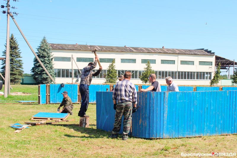 Камунальнікі таксама прывезлі на спартыўную пляцоўку перад АТП № 18 хакейную каробку, што была на стадыёне, яе сабралі ў гэты дзень супрацоўнікі аўтабазы для рухомых гульняў малых дзяцей, а гаспадарчая група аддзела адукацыі папоўніла гэтую спортпляцоўку арэлямі і металічнай сферай для фізічнага развіцця.