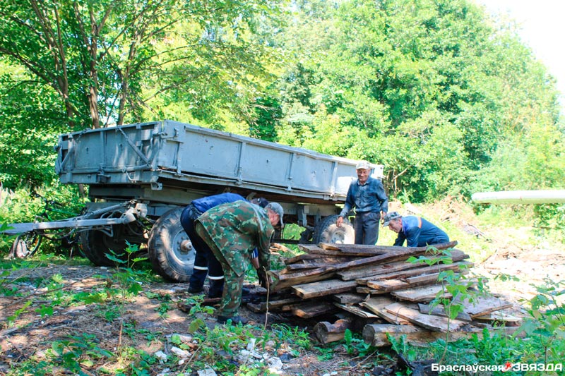 Пры гэтым у якасці другаснай сыравіны на перапрацоўку сабралі 6 мяшкоў пластыку, а яшчэ карысную драўніну накіравалі для ацяплення гарадской лазні. На землях агульнага карыстання ў дварах дамоў № 27-33 па вул. Садовай пад кіраўніцтвам спецыяліста аддзела архітэктуры, будаўніцтва і жыллёва-камунальнай гаспадаркі Арыны Мачанскай таксама дужыя мужчыны з тапарамі, ламамі і бензапілой разбіралі хісткія хлеўчукі.