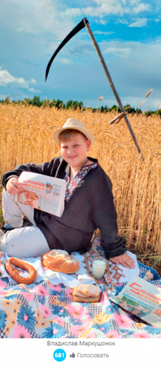 — Об условиях конкурса родители прочитали сразу, — делится своими впечатлениями Владислав. — Очень хотели получить главный приз, поэтому долго думали над композицией. Идею обеда в поле придумала мама. Потом мы внимательно следили за каждой работой участников и ходом голосования. Когда по телефону узнал, что получили первое место, скорее этой радостью поделился с родителями и своими друзьями. Теперь и дальше обязательно не пропустим ни одного конкурса.