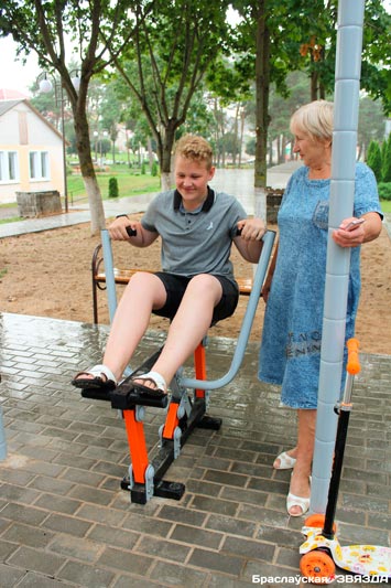 — Площадка стоила почти 17 тыс. белорусских рублей, — говорит Анатолий Вадимович. — Тренажеры, собранные в ней, разнообразны и рассчитаны на тренировку практически всех групп мышц. Заниматься разрешается детям старше 14 лет и взрослым с массой тела до 150 килограмм. В первые дни здесь даже выстраивалась очередь из желающих протестировать спортобъект, да и сегодня он не пустует ни днем, ни вечером.
