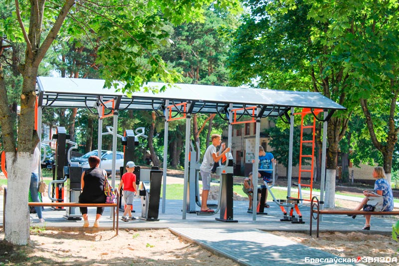 Еще недавно браславчане жаловались, что некуда сходить с детьми, нет площадок для занятий спортом, футбольных полей или хотя бы разнообразия турников. Уже сегодня полноценно работает скейтпарк, площадка с уличными тренажерами, обновляется стадион, скоро можно будет протестировать спортивные площадки на ул. Садовой во дворе дома 55 «Б» и у СШ № 1. Возле второй школы появится детская игровая площадка и воркаут-зона. И это еще не полный перечень мест для развлечений и занятий спортом. Теперь можно заниматься не только в душных спортзалах, а и на улице, что полезнее для здоровья и экономит семейный бюджет. Мы уже рассказывали о новеньком скейт-парке. На этот раз объектом внимания корреспондента «Браславской звезды» стали недавно сданные в эксплуатацию спортивные уличные тренажеры.