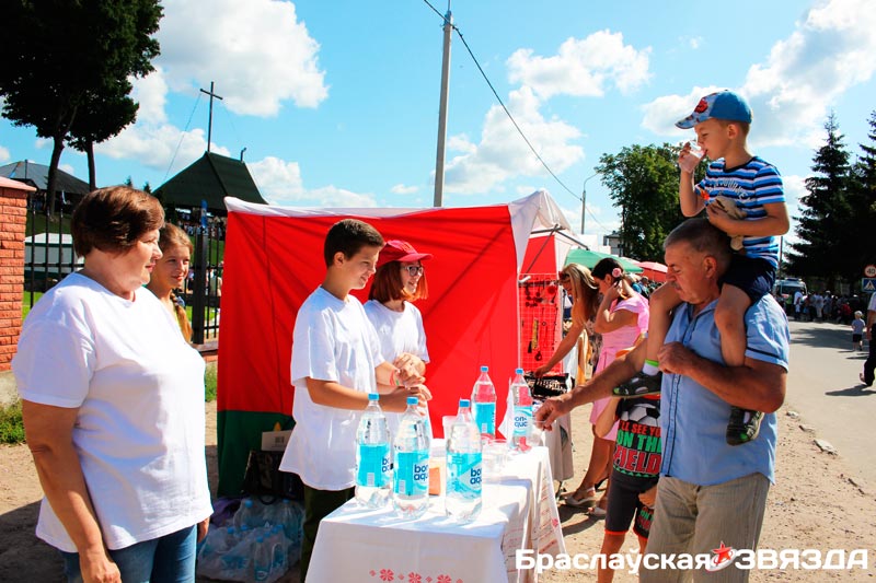 Уже третий год подряд Браславская районная организация БОКК во время проведения религиозного праздника «Матерь Божья Владычица озер» проводит благотворительную акцию в рамках кампании «Жара»: раздает воду верующим и гостям города.