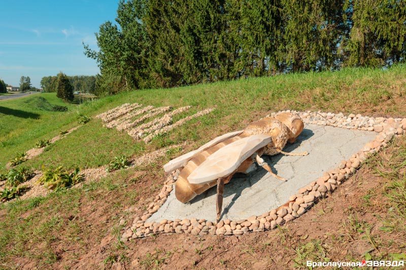 Как театр начинается с вешалки, так и населенный пункт, безусловно, с въездного знака. Свои изюминки такого рода уже есть в Опсе, Друе, Браславе, а теперь и в Видзах. Габионная композиция включает название поселка и пространственную интерпретацию его герба. Всё сделано руками местных умельцев. «На нашем гербе пчела — символ трудолюбия.