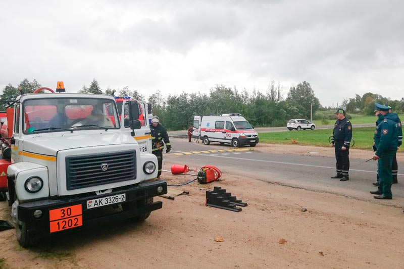 В понедельник, 16 сентября, некоторые водители и пешеходы наблюдали, как в агрогородке Ахремовцы оперативно работала команда специалистов из различных служб спасения после произошедшего ДТП с участием в нем автомобиля, перевозившего горюче-смазочные материалы. Как оказалось, тревога была учебной.