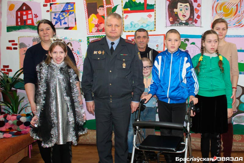 Начальнік Браслаўскага аддзялення Дэпартамента аховы МУС Рэспублікі Беларусь Мікалай Сільчонак таксама завітаў да навучэнцаў ЦКРНіР, каб павіншаваць хлопчыкаў і дзяўчынак, і падарыў цэнтру прыстасаванне для руху.