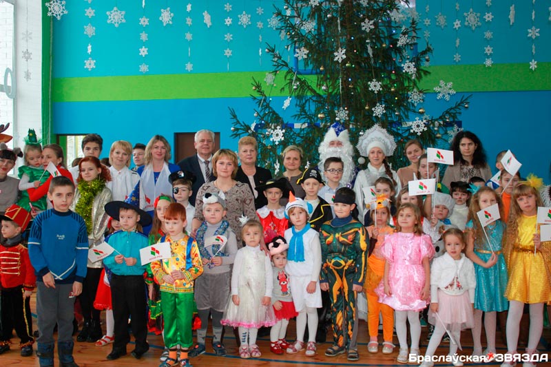 Павіншаваць юных браслаўчан з надыходзячым святам завіталі і ганаровыя госці — старшыня раённага Савета дэпутатаў Ніна Пучынская, намеснік старшыні райвыканкама, старшыня РА РГА «Белая Русь» Алена Бабінская, намеснік старшыні райвыканкама Вольга Вялічка. Н. Пучынская пажадала ўсім дзецям штодзень адчуваць любоў, пяшчоту і ўвагу сваіх бацькоў і верыць у здзяйсненне мар. Таксама яна заўважыла, што кожны год заўсёды будзе адметным найперш клопатам пра нашых дзяцей. Да гэтых віншаванняў далучылася і А. Бабінская, якая адзначыла, што на Браслаўшчыне яе маленькім жыхарам удзяляецца вялікая ўвага не толькі з боку мясцовых улад, але і грамадскіх аб’яднанняў. Так, раённая арганізацыя РГА «Белая Русь» выдзеліла 300 рублёў на навагоднія падарункі.