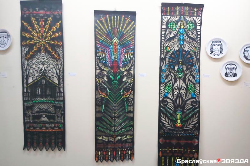 Жанчына не ўпершыню прадстаўляе свае работы ў Браславе. Па прафесіі яна радыёінжынер, а па прызванні — творца. На гэты раз майстрыха прывезла для экспазіцыі выцінанкі, а таксама талеркі з партрэтамі.