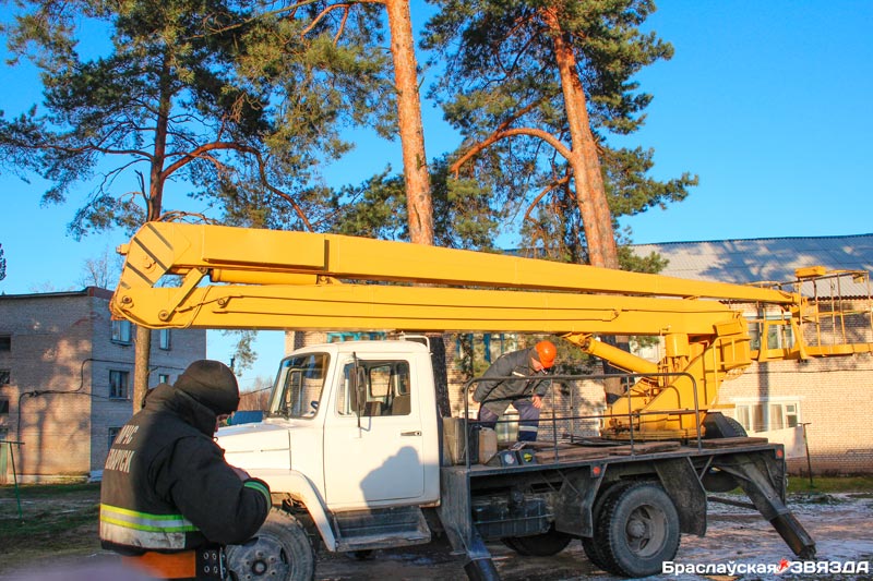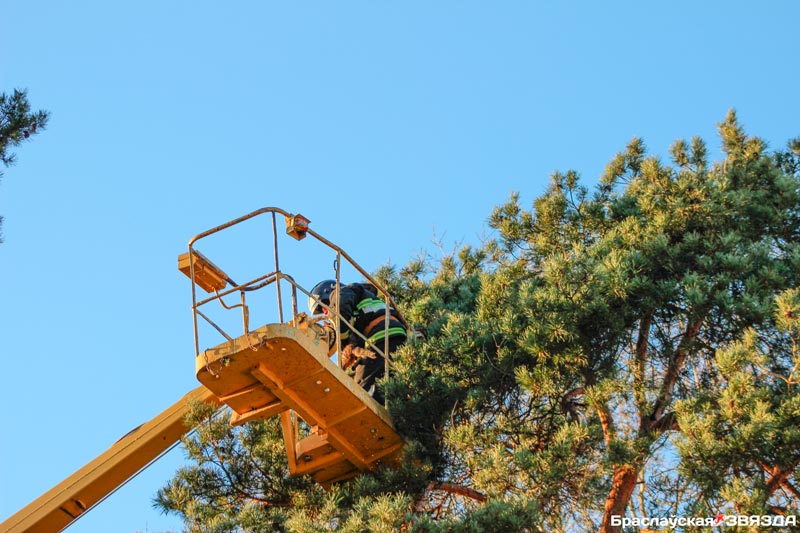 Чтобы спасти кота, потребовалась вышка, которую предоставил «Браслав-коммунальник», ловкий специалист и несколько минут.