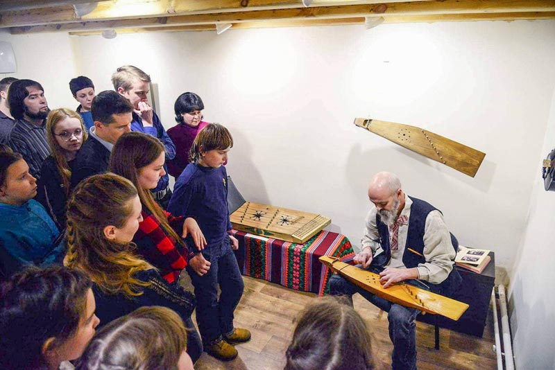 На адкрыцці выстаўкі ў Полацку прысутнічалі супрацоўнікі Браслаўскага раённага аб’яднання музеяў Элеанора і Валерый Зінкевічы. Яны правялі экскурсію па экспазіцыі і майстар-клас ігры на гуслях і дудачцы.
