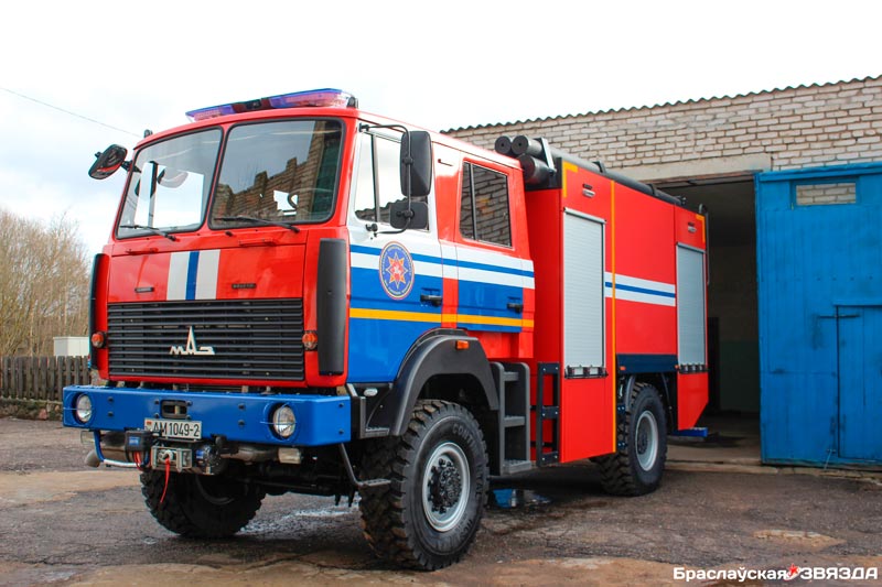 Автопарк Дрисвятского пожарного аварийно-спасательного поста не обновлялся давненько и до сих пор был представлен ЗИЛами еще советского производства. Поэтому абсолютно новенькая пожарная автоцистерна АЦ 5,0 на базе МАЗа, поступившая на вооружение в Дрисвяты буквально несколько дней тому назад, пришлась как раз к спасательскому двору.