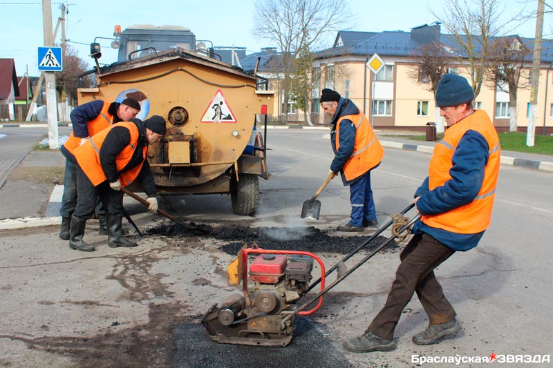 Аномально теплая для наших широт погода позволила в этом году «Браслав-Коммунальнику» рано начать ямочный ремонт городских улиц: бригада участка благоустройства взялась за это дело уже в начале второй декады марта.