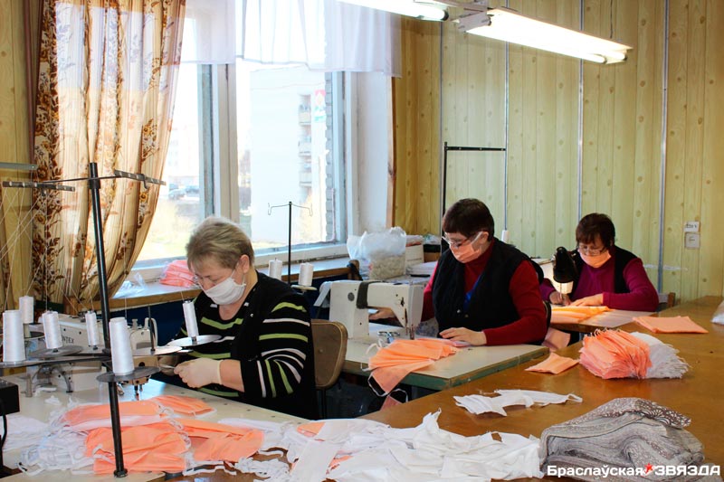 Вопытныя швачкі РКБА па ўзоры марлевых масак, якія прадаюцца ў аптэках, хутка асвоілі такую аперацыю, пры гэтым няўхільна выконваюць санітарна-гігіенічныя патрабаванні: мыюць рукі з антыбактэрыяльным мылам, апрацоўваюць іх дэзсродкамі, два разы на дзень правяраюць у сябе тэмпературу.