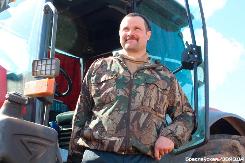 Здымак: Канстанцін Бурэль штогод распачынае пасяўную ў КУСП «Браслаўскі». Зімой ён старанна працаваў, каб выдатна наладзіць свой МТЗ-3522 і сеялку, бо не церпіць прастояў у працы. Кожны дзень К. Бурэль засявае па 30 – 40 гектараў.