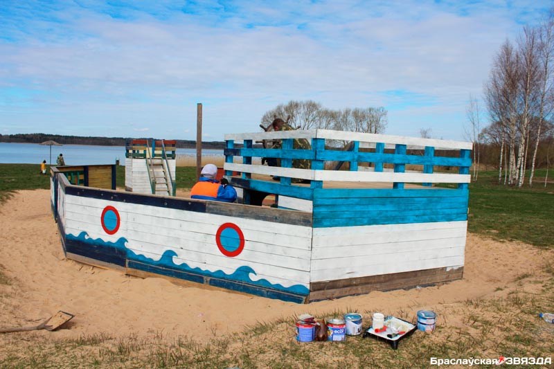 Детскую игровую площадку «Кораблик» на берегу озера Бережье отремонтировали совместными усилиями Браславского районного объединения профсоюзов, «Браслав-коммунальника», предпринимателя Романа Хирьянова и неравнодушных браславчан.