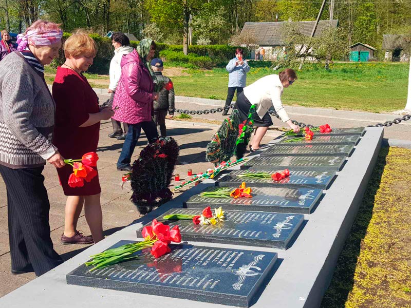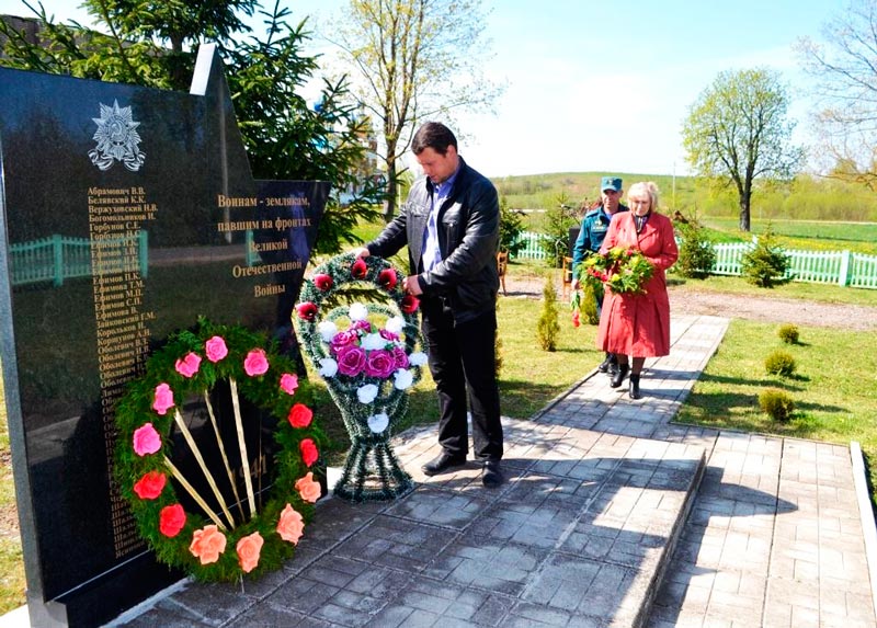 Возложили цветы пограничники, представители местной власти также во время торжественной церемонии, посвященной Дню Победы, к памятнику погибшим воинам и в агрогородке Козяны и к мемориалу в д. Боровые.