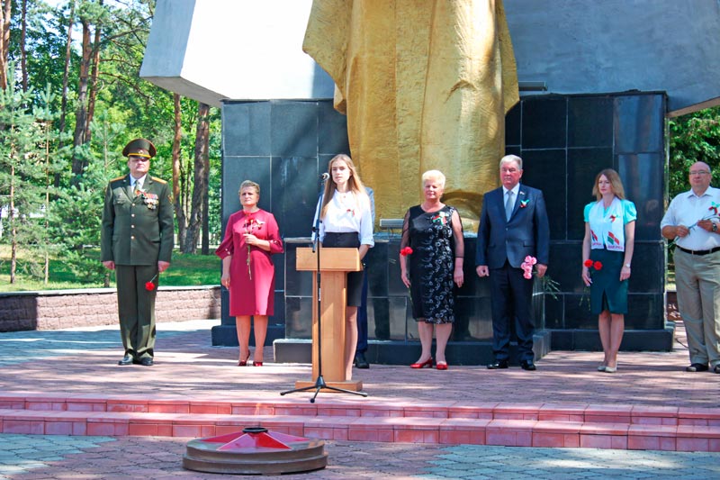 Пад гукі метранома прайшла мінута маўчання, і толькі трапяталі пялёсткі Вечнага агню — сімвала незгасальнай людской памяці. Рэхам аддаліся стрэлы воінскага салюту, а заключным момантам урачыстай цырымоніі стала ўскладанне вянкоў і кветак да падножжа помніка.