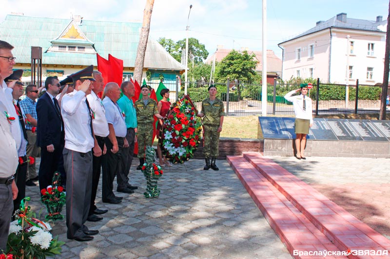 Ад імя раённай улады сардэчна павіншаваў прысутных са святам старшыня Браслаўскага райвыканкама Аляксандр Баданін. Ён нагадаў пра важнасць захавання кожным жыхаром краіны гістарычнай памяці пра Вялікую Айчынную вайну, пра нялёгкія гады станаўлення беларускай дзяржаўнасці.
