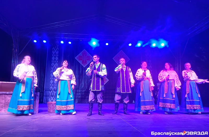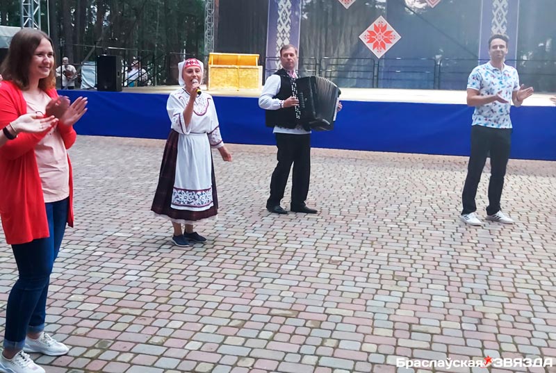 Тым часам на сцэнічнай пляцоўцы пачалося выступленне ансамбля беларускай песні «Сябрына» і з’явілася вядучая Марыя Сініца, якая на працягу ўсяго вечара распавядала пра розныя традыцыі і звычаі Купалля. Дапамагалі ёй іншыя работнікі культуры, якія праводзілі адпаведныя гульні і абрады: браслаўчане праходзілі ачышчэнне ручнікамі, шукалі папараць-кветку і інш.