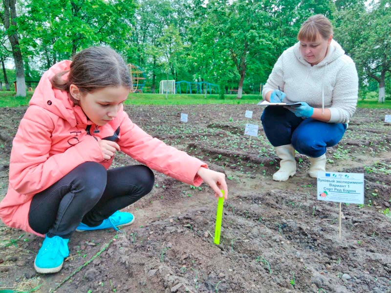 Атрымаўшы ад арганізатараў метадычныя матэрыялы, насенне і ўгнаенні, калектыў установы адукацыі пасадзіў 3 сарты цыбулі нідэрландскай селекцыі і 2 — беларускай, каб выявіць найбольш ураджайныя і перспектыўныя для нашага рэгіёна, на яшчэ адным сорце апрабавалі расадны і безрасадны спосабы вырошчвання, прычым як звыклы — у скрыні, так і новы — у так званых улітках (скручаных слаях пенаполіэтылену з зямлёй). У работу ўключыліся многія вучні і педагогі: адны мелі справу з насеннем, іншыя шчыравалі на ўчастку, а камусьці давялося нават заняцца вырабам неабходных інструментаў. Да таго ж скрупулёзна фіксавалі вынікі доследу ў спецыяльным дзённіку па прапанаванай схеме.
