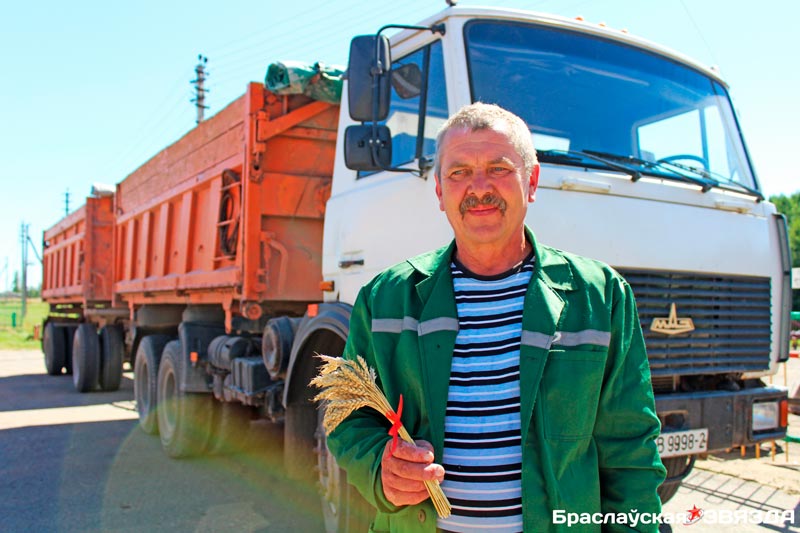 На Браславщине активными темпами идет уборка урожая. Водителю МАЗа Олегу Мацуку, который усердствует на полях СПК «Маяк Браславский», не понадобилось и недели, чтобы перевезти первую тысячу тонн зерна.
