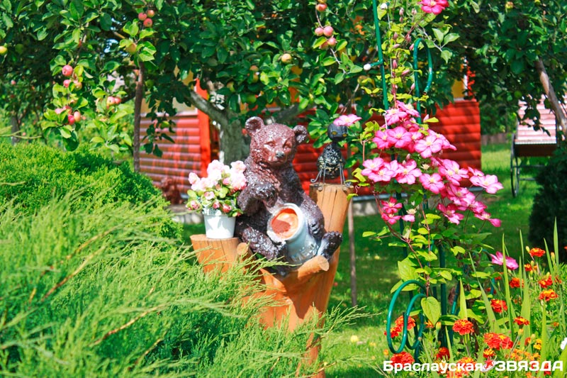 — Всегда старалась поддерживать порядок возле дома. А всю эту красоту на подворье вместе с мужем делали — понемножку, не спеша. Большинство садовых фигурок-подарки детей, которые знают наши увлечения. Я тоже очень люблю цветы, саженцы почти не покупаю:сама воспитываю. Много растет роз, хризантем, к сожалению, уже отцвели петунии и лилии. В этом году у меня клумб меньше, так как дети говорят, что чрезмерно, не надо столько. Муж тоже отделкой занимается, например, сук красивый найдет и обработает.