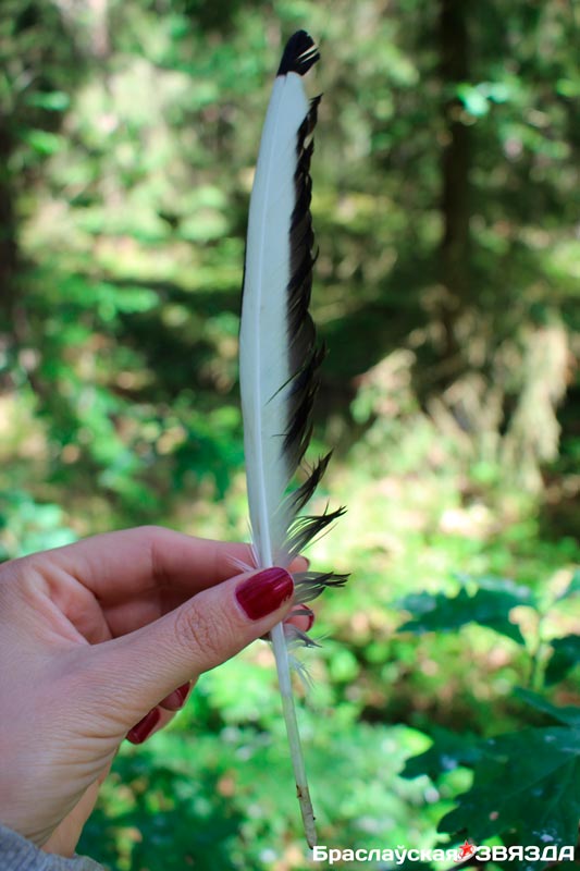 Оставив машину на дороге, отправляемся в лес. С собой — карта с нанесенными метками о гнездовании, бинокль, навигатор, фотоаппарат, телефон. Иван отмечает, что порой приходится проводить в лесу целый день, поэтому следует экипироваться по полной. Минут 20 по лесной чаще — и мы оказываемся на берегу болота. Научный сотрудник начинает внимательно осматривать местность и деревья, растущие достаточно плотно. Наконец на одном из них замечаем внушительных размеров гнездо. Но есть ли в нем жильцы? Если бы там находились птенцы, которые выводятся к концу мая, то мы бы увидели орлана-родителя, который явно кружил бы над нами и издавал специфический крик беспокойства. Однако всё тихо. Аккуратно подходим ближе к дереву и наблюдаем перья и результат жизнедеятельности птиц. По этим признакам можно делать вывод, что орлан всё-таки не сменил свою «прописку». И. Тесюль делает пометку у себя в документах, и мы отправляемся обратно. Теперь очередная проверка будет весной следующего года (ввиду немногочисленности исследуемого вида орланы-белохвосты обследуются ежегодно).
