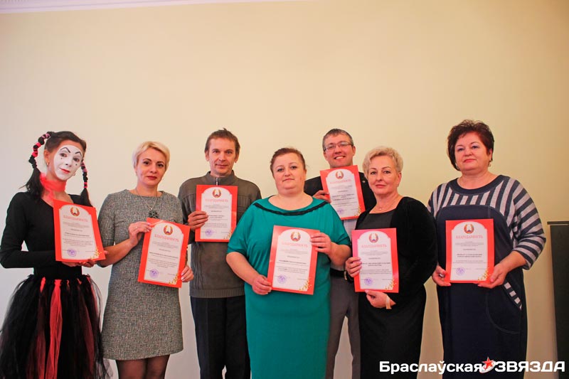 Са сцэны да прысутных звярнулася начальнік аддзела ідэалагічнай работы, культуры і па справах моладзі Юлія Чагарына. Яна шчыра падзякавала за сумленную дзейнасць і дасягненні спецыялістам, а таксама ўручыла карпаратыўныя падзякі. Іх уладальнікамі сталі намеснік дырэктара РЦК Алена Зубко, загадчык метадычнага аддзела Марына Сініца, тэхнічны работнік Наталля Жыхарава і інжынер цэнтралізаванай бібліятэчнай сістэмы Сяргей Нямыткін. Атрымалі падзякі і калектывы, якія часта выступаюць на мерапрыемствах рознага ўзроўню: народны тэатр мініяцюр «Покер», народныя ансамблі «Сябрына» і «Вярба», Іказненскага дома культуры і Слабодкаўскага этнаграфічнага цэнтра. Падзячныя лісты ўручылі і прадстаўнікам тых арганізацый, якія часта супрацоўнічаюць з работнікамі культуры падчас розных мерапрыемстваў: Святлане Усавай з цэха па вырабе сыроў і Віктару Міцько з філіяла «Браслаўрыба» Глыбоцкага МКК.