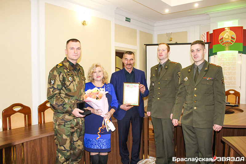В торжественной обстановке представители военной части поздравили сержанта С. Скурьята с успешным прохождением службы, вручили ему именные часы, затем поблагодарили его родителей за воспитание Сергея гражданином и патриотом, надежным защитником Родины и белорусского народа. «Вы вправе гордиться своим сыном, а он – такими мудрыми, чуткими и заботливыми родителями», – подчеркнул майор Андрей Рубин.
