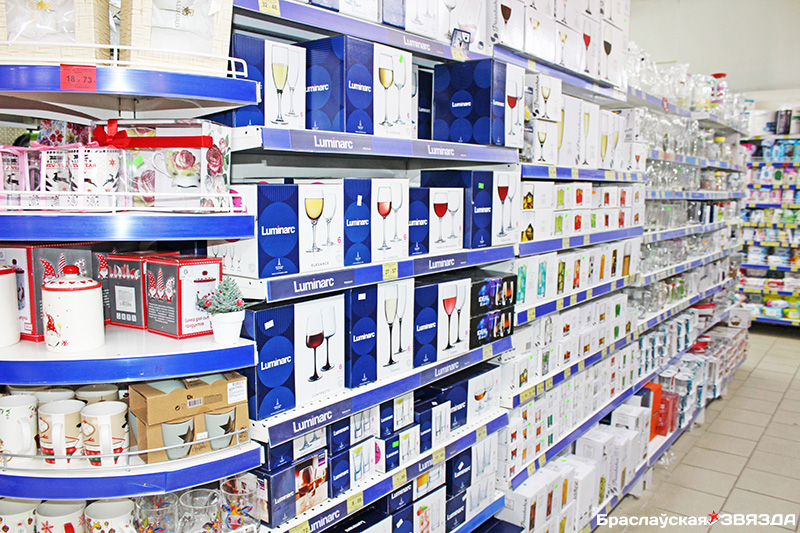 В торговом центре можно приобрести и подарки для взрослых. В отделе посуды имеются наборы бокалов, креативные вазы, чайные и кофейные сервизы и модные нынче столовые принадлежности.