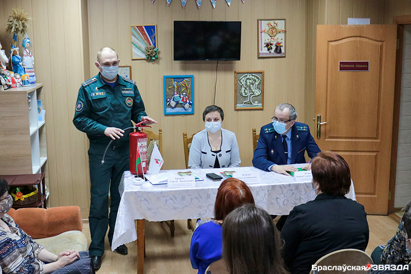 Начальнік раённага аддзела па НС Сяргей Крыўко засяродзіў увагу прысутных на пажарнай бяспецы, прывёў прыклады трагічных выпадкаў, нагадаў супрацьпажарныя правілы. Дзеянні ў крытычнай сітуацыі, дарэчы, супрацоўнікі сацыяльнай службы замацавалі на практыцы: ратавальнікі арганізавалі для іх майстарклас па выкарыстанні вогнетушыцеля. ■