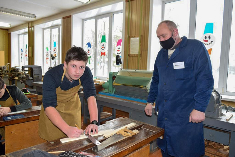 Сотрудничество творческого тандема продолжается уже несколько лет: Дима с 5-го класса посещает дополнительные занятия, которые ведет учитель обслуживающего труда. Парень за это время многому научился. Теоретические знания и практические навыки ученик демонстрирует во время предметной олимпиады, где не отстает от старшеклассников, да, как говорит, уметь мастерить и для себя полезно. Складной стул, модель корабля, выжженные картины, лестница, шкатулка из бересты и инструменты – далеко не полный перечень его изделий, для создания которых Дима использует различные материалы. Чаще всего он работает с деревом и металлом – соответствующее оборудование имеется в школе. Мастерит парень и дома, ведь в семье поддерживают увлечение Димы и даже купили ему мини-станок.
